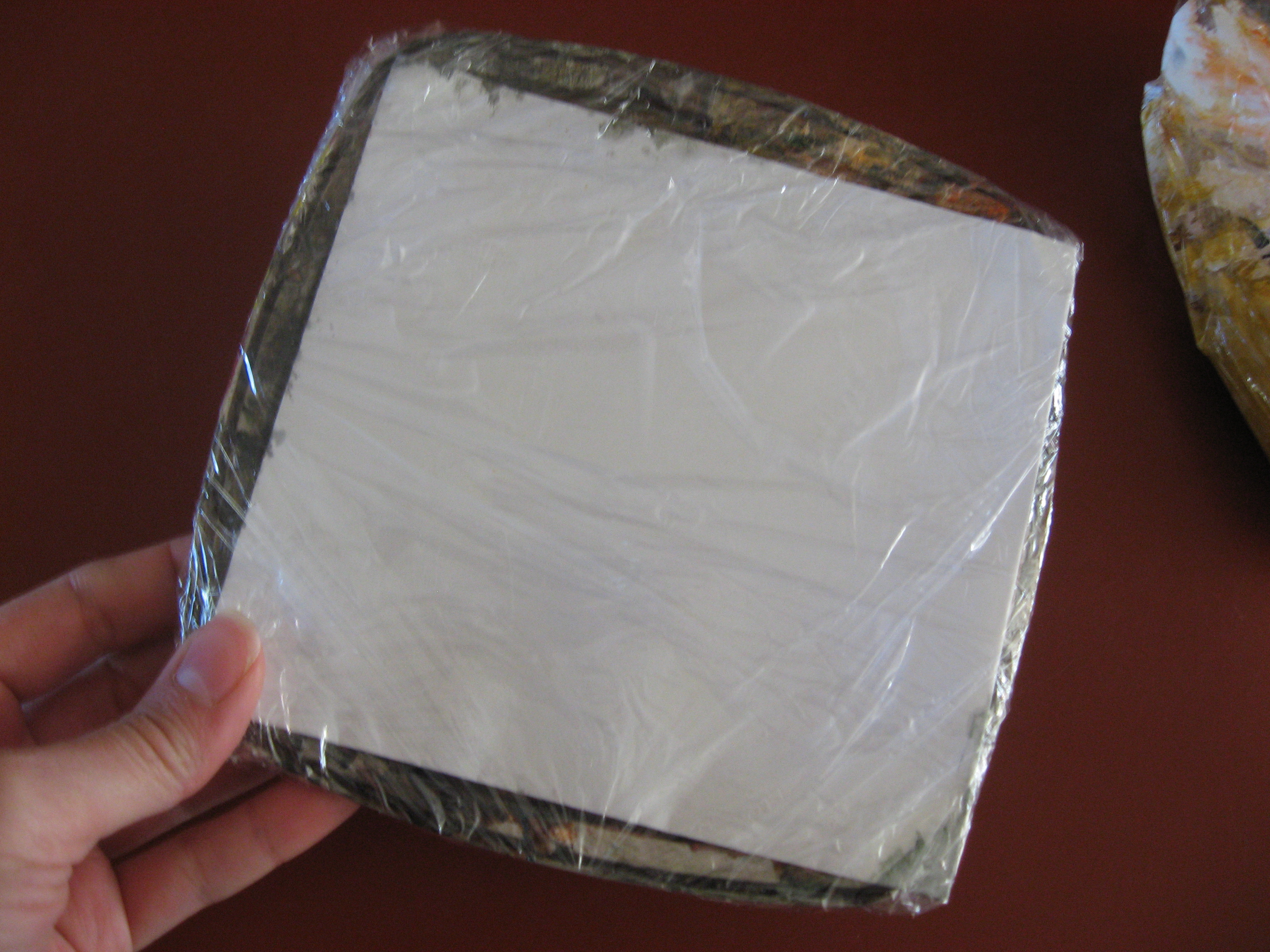 Cleaning an oil palette is a ghastly business and nothing short of using disposable palettes prevents this messy chore, which, if purchasing palettes can become a costly addition to an already expensive profession. The use of an ice-cream lid works wonderfully well as a substitute for disposable palettes, but if one paints prolifically, the disposal of these after a session or every few sessions leaves one rather short of options, unless one is of course and ice-cream addict! The lids, too, aren’t always white and having to prime a palette with white gesso before getting underway with your latest inspiration is just insane.
